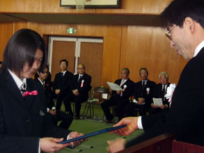 卒業生を代表して、金賢燮さんが「文化祭やさまざまな行事などあっという間の3年間。ここで学んだことを誇りに社会で役立つ人になります」と答辞を述べた。
