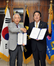 民団中央本部と青巖大学校(全南・順天市)は5月30日、韓国中央会館で「協力と交流に関する協約」を結んだ。呉公太団長と姜明運総長が「協約書」に調印、交換した。林三鎬副団長と青巌大・在日コリアン研究所の鄭熙ソン所長が同席した。