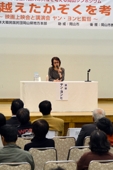 【岡山】民団岡山本部(宋燦錫団長)は17日、岡山市内のオルガホールに映画「かぞくのくに」のヤン・ヨンヒ(梁英姫)監督を講師に招き、「第10回定住外国人の人権を考える岡山シンポジウム」を開催した。