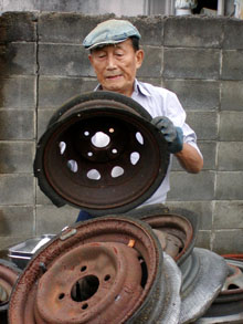 弟や妹たちが腹を空かして帰りを待っていた。そして母のためにもがむしゃらに働いた。「苦労は口で言い尽くせない。体だけ張ってやってきた」。26歳の時に結婚、2男1女に恵まれた。 今、月に10日ほどのペースで4カ所の鉄工所を回る。屑米は1カ月間で40、50㌧を集めるという。じっとしていられない性分だと笑う。外回りのない日は、自宅で回収した鉄の解体作業に汗を流す。