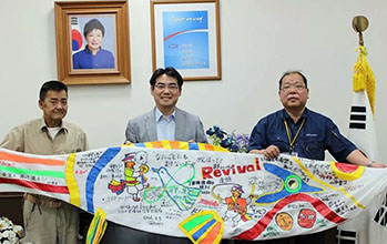 代表は22日、日本人大工の橋本武美さんとともに駐神戸総領事館(李成権総領事)を訪れ、李総領事にメッセージを書き添えてもらった。この鯉のぼりには韓国、日本、フィリピンの市民が手をとりあって災害復興に臨むという決意が込められている。今月下旬、現地を訪れて掲げる。