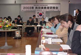 研修会では、政府の基本理念と参与政府の政策姿勢の説明に続き、各担当領事からの具体的な説明を受けた後、民団実務者との活発な意見交換が行われた。民団側からは業務改善や領事業務に関する意見や要望が出されるとともに、研修会の継続を訴えた。