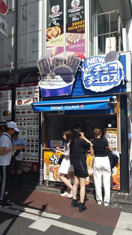| 大人気チョコ・チュロス 職安通りのドン・キホーテ新宿店に続き、今年4月に開店したスノーウィーヴィレッジ。「チョコ・チュロス」は、韓国人に人気のオレオを練り込んだチュロスと生クリームが容器に入っており、週末は1日600個は売れるという。 初めて食べたという都内の女子高校生2人は「すごく美味しい」と笑顔。新大久保の魅力は食べ物が美味しいから。チーズハットク、チーズタッカルビ、トッポギを良く食べるという。 また、韓国コスメについては「安いのに発色がいいとか、種類が多いと聞くので新大久保に来たらなるべくチェックする」と話す。 |