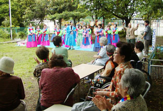 【神奈川】東京王仁ライオンズクラブは12日、川崎市立桜本小学校内で開かれた同胞高齢者交流クラブ「トラヂの会」定例会に参加、野外の焼肉パーティーで「オボイナル」(両親の日)を祝った。お年寄りの参加者は100人近くに上った。