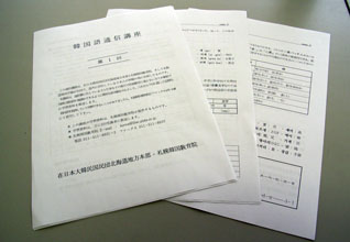 テキストは入門者向けで1回あたり8㌻、全7回講座。受講者には2月から教材の発送が始まった。教材製作を担当した札幌韓国教育院の鄭萬鎰院長は「10年におよぶ日本での韓国語教育の蓄積を生かした。全講座を修了すれば、韓国語が好きになり、講習会に出ても先生の話が理解できるようになるでしょう」と話している。学習上の疑問にはFAXとメールでアドバイスもしている。