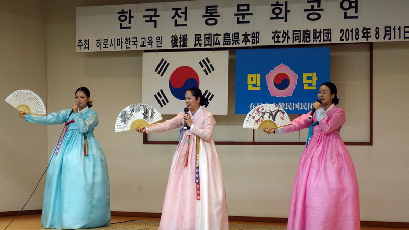 ▽広島(李英俊団長、11日=同本部)李団長が7月の豪雨災害に全国から駆けつけた同胞ボランティアへ感謝の言葉を述べた。2部のアトラクションは伝統文化公演で被災者を慰労。イムバンウル国楽祭大賞(大統領賞)の受賞者3人が春香歌のなかのサラン歌をカヤグムとへグムのコラボレーションで披露した。また、広島韓国奨学会が県内の同胞大学生6人に奨学金を贈った。