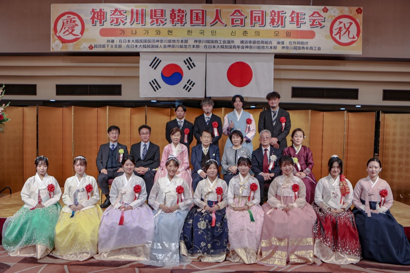 【神奈川】神奈川県本部(李富鉄団長)は1月10日、横浜市内で神奈川韓商、横浜幸銀と共催で合同新年会を開催した。県下各支部、傘下団体をはじめ関係団体、協力機関から約180人が参加する盛会となった。