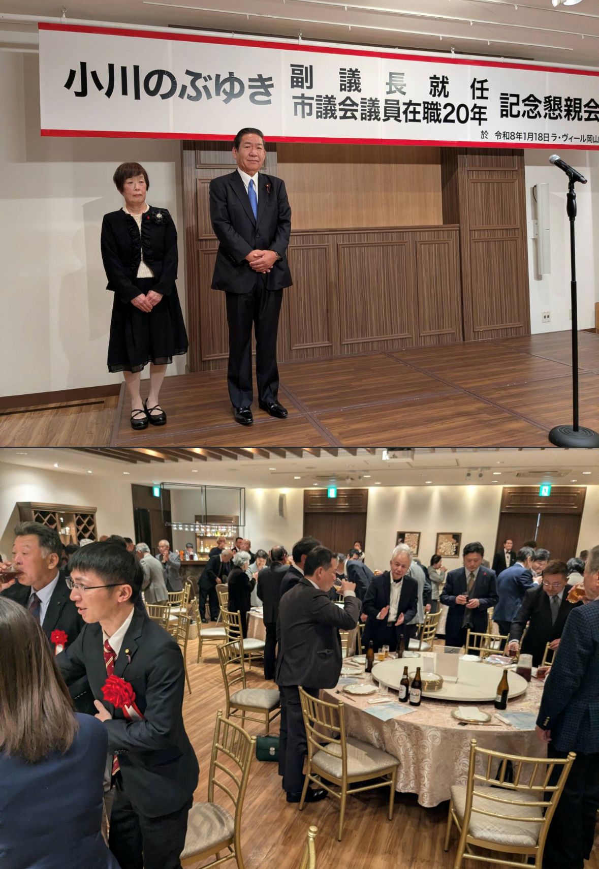 韓国民団岡山県本部の行事に積極的に参加していただいている岡山市議会議員の小川信幸様が、副議長就任及び議員在職20年の記念懇親会を1月18日(日)、岡山市内で開催した。