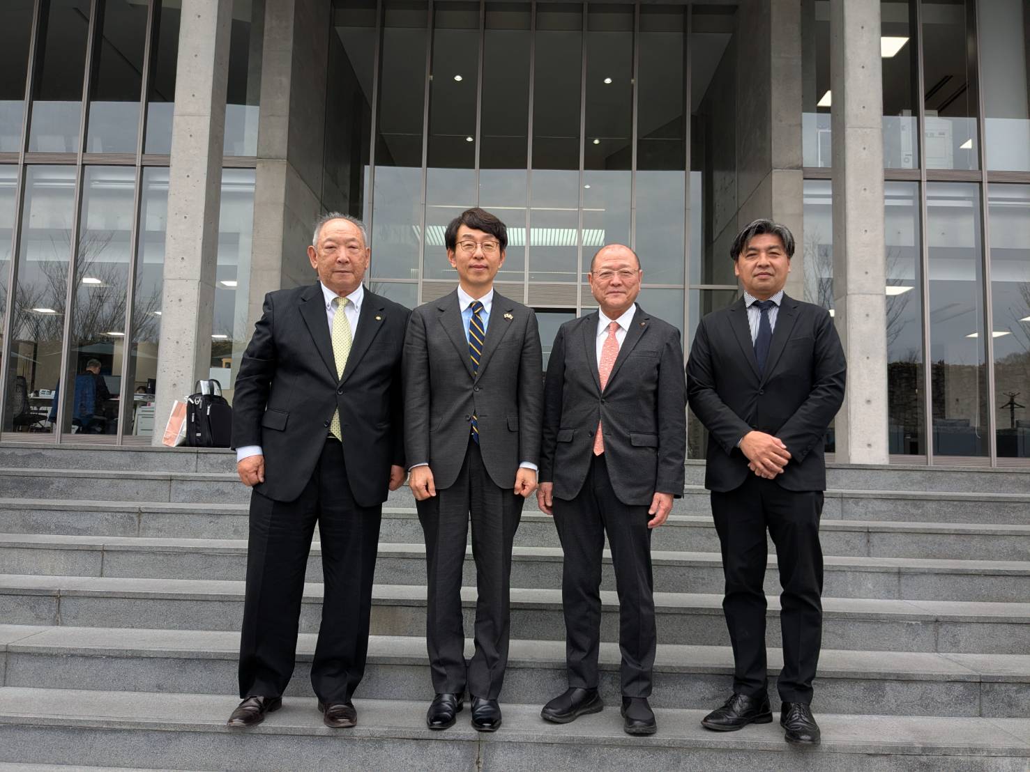 金学団長は李相烈神戸総領事、岡山県日韓親善協会会長の松田久様と一緒に環太平洋大学准教授の四宮貴久様を訪ねた。