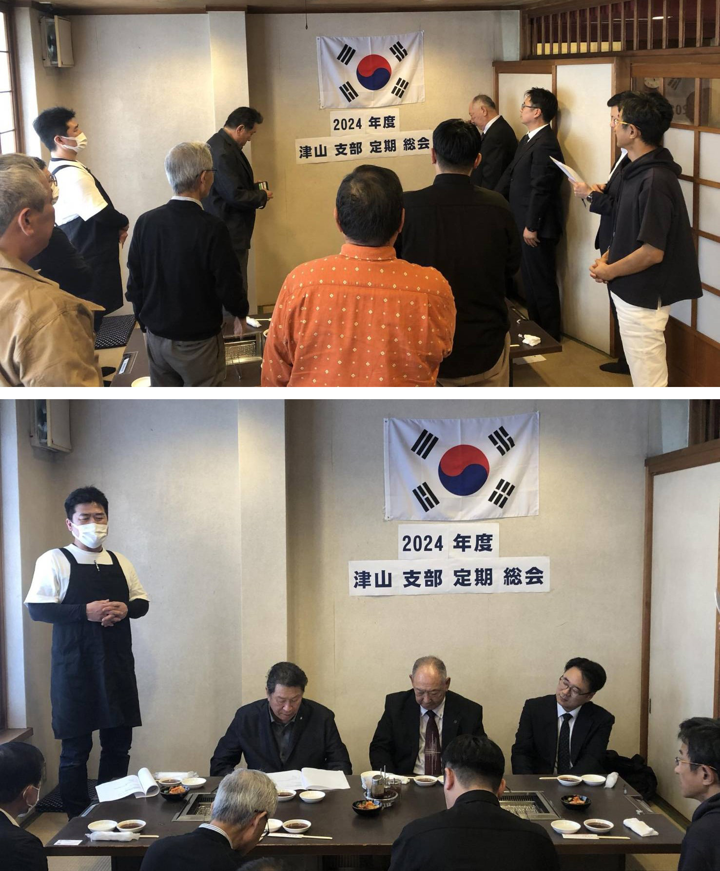 県本部から金学団長、朴雅史副団長、張教之副議長、岡山韓国教育院の全同浩院長など、これも若手が多く集まり、総会後は和やかな雰囲気で会食を楽しんだ。