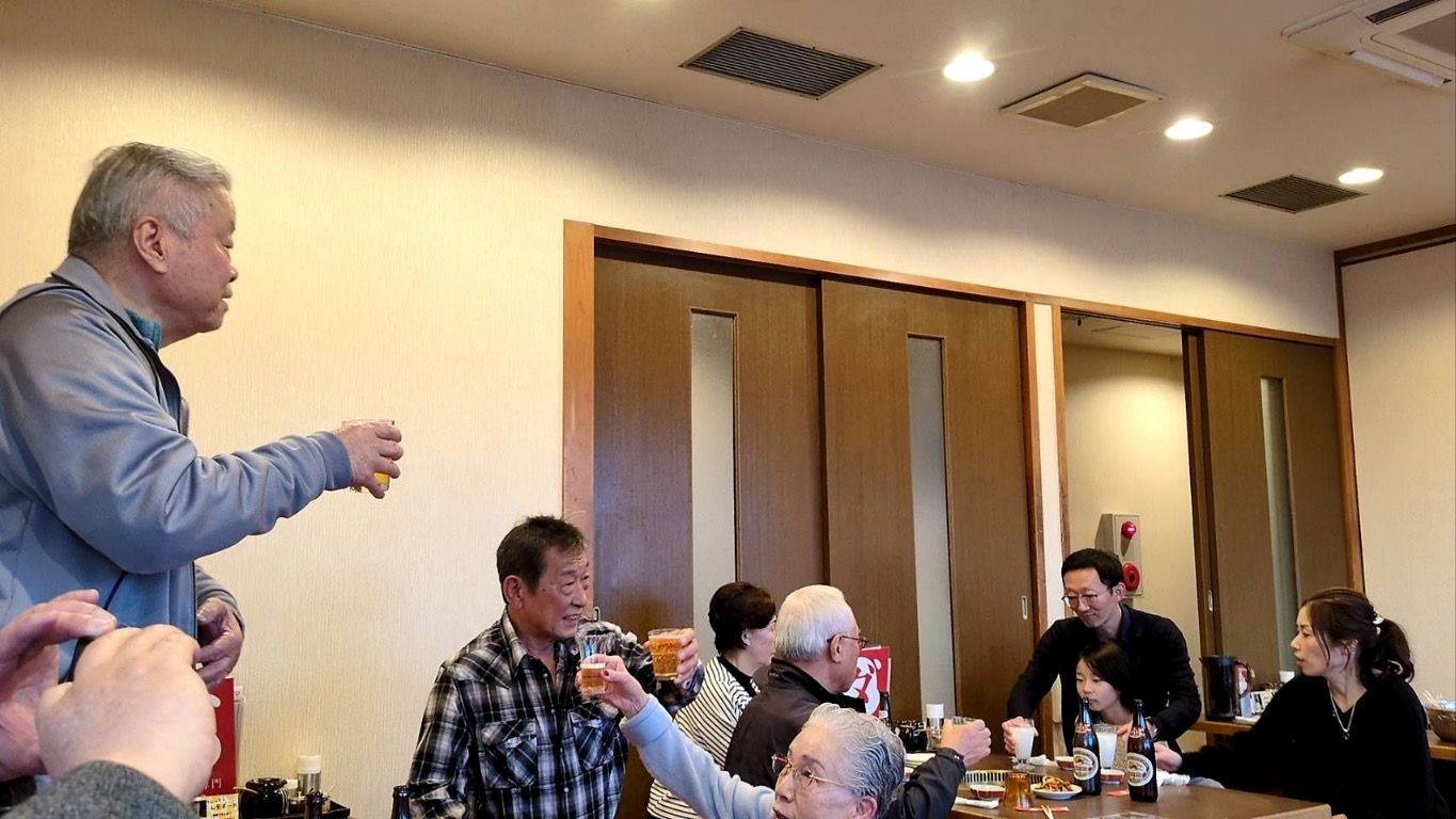 県本部金学団長から来賓挨拶があり、金宗植さんの乾杯発声で食事会が開始。