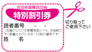 ※民団新聞購読団員の方は下の特別割引券をご利用下さい。