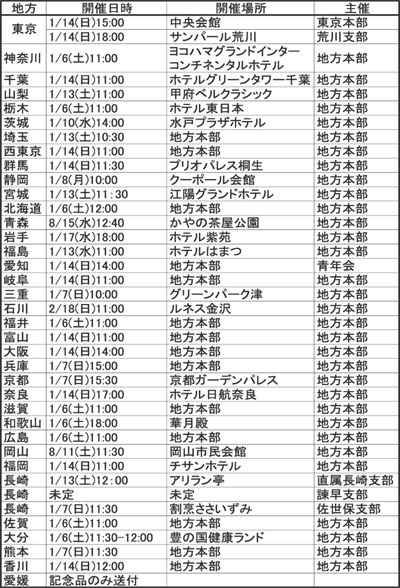 同胞新成人の新しい門出を祝う式典が、来年1月8日の「成人の日」を前後して全国37カ所で開かれる。主催の各地民団本・支部によれば、成人式だけを単独開催するところは少なく、新年会と併催するところが多い。愛知、兵庫などでは20歳の記念にチマチョゴリを着てみたいという女性のためにレンタル衣装を用意。また、記念品に実用的な商品券を用意している地方もある。