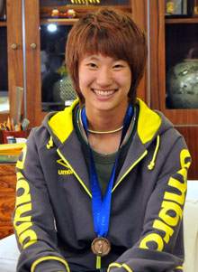 | ºßÆü4À¤¤Î¹¯ÍµÈþ¤µ¤ó¤¬³®ÀûÊó¹ð £Õ20½÷»Ò£×ÇդδڹñÂåɽ¤È¤·¤Æ½é¤Î3°Ì¤Ë¹×¸¥¤·¤¿ºßÆü3À¤Áª¼ê¡¢¹¯ÍµÈþ¤µ¤ó¤¬10·î1Æü¡¢Ì±ÃÄÃæ±ûËÜÉô¤òˬ¤ì¡¢Å¢¿ÊÃÄĹ¤Ë³®ÀûÊó¹ð¤ò¤·¤¿ |