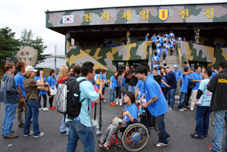 祖国に触れ、仲間と語らい、学び、考えた…600人が祖国で一堂に会した「在日同胞青年ジャンボリー」は、14日から3泊4日の短期間ながら、多くの青年の心にしっかりと思い出を残した。DMZ隣接地では、眼前に広がる北韓の山々に、半世紀を経てなお続く南北分断の現実を痛感した。5つのコース別体験では、チマチョゴリの着付け、故宮めぐり、大学での交流、今春に開放されたばかりの北岳山登山などを楽しんだ。フェアウエルパーティーにゲストの「コヨテ」が登場すると、若さが爆発し、皆で踊りまくった。終了後も、なかなか去りがたく、あちこちに別れを惜しむ輪ができた。