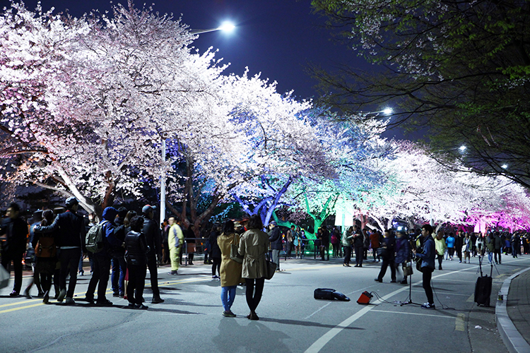 鎮海軍港祭は、毎年200万人以上の観光客が訪れる韓国最大級の桜祭り。期間中には、鎮海軍楽儀仗フェスティバルや花火ショーなどのイベントも行われる。4月1日〜10日。