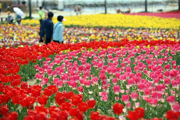 世界5大チューリップ祭りに選ばれた「泰安チューリップ祭り」では、300種120万本のチューリップを見ることができる。オランダの先進システムを導入し、時間差で変化するチューリップを鑑賞できる。ルピナスやユリ、菜の花などの春の花が植えられている。4月16日〜5月8日。(写真は韓国観光公社。詳細は同ホームページ)