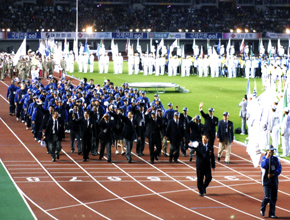 第86回慶南大会(金昭夫引率団長)の開会式で入場行進する在日同胞選手団