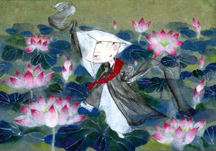 韓国民画家の池さんが描いた「花と童女」や蓮花などをモチーフにした作品と民画を展示する。