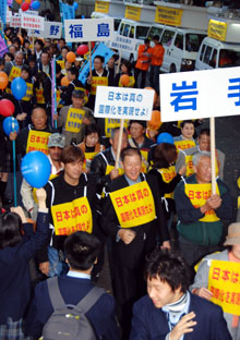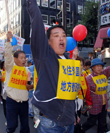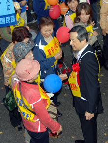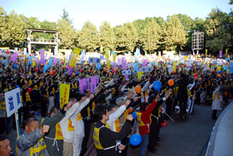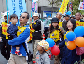 「なんとしても、定住外国人の地方参政権を実現させよう!」−−11・7決起大会の会場となった日比谷野外音楽堂は、子どもから老人まで全国から結集した5000人の参加者で熱気に包まれた。家族ぐるみで参加するなど予想を超えた同胞の結集に、改めて民団の底力を感じていた。街頭行動中に反対グループを目にしたときは、逆に闘志をかき立てられ、地方参政権を必ず勝ちとるという決意を膨らませた。11・7決起大会・デモを写真で追った。