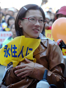 「この子のためにも、参政権は絶対勝ちとる」