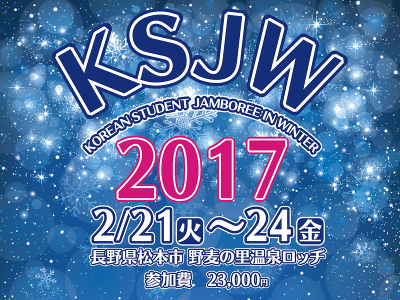 | ◇日 程:2017年2月21日(火)〜24日(金) ◇宿 所:温泉ロッヂ「野麦の里」 (長野県松本市奈川1173-106) TEL:0263-79-2244 http://www.go.tvm.ne.jp/~sato/ ◇参加費:23,000円(交通費、宿泊費、スノーボード関係のレンタル費込み) バスは東京、愛知、大阪から出発します。 その他の遠隔地方参加者はバス集合地までの交通費を一部支援します。要相談。 ◇対 象:在日の大学(院)生、専門学校生、予備校生 ◇締め切り:2017年1月31日 ◇準備品:着替え、雨具、洗面用具、タオル、ドライヤー、動きやすい服、常備薬、筆記用具、保険証のコピーなど。 ◇日程中の主な企画 会式/歓迎会/他己紹介/班活動/スノーボード/討論会/ナイトフェスティバル/韓国文化体験/班別発表 (事情により一部変更する場合もあります) |