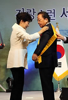 | | 朴槿恵大統領から無窮花章を受ける金昌植民団中央本部常任顧問 |