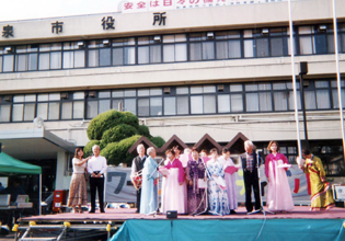 大阪 泉北支部 98年8月から支部会館1階で「街かどデイハウス」ムグンファハウスを開設。多くのハラボジ、ハルモニが利用している。ムグンファハウスと婦人会のメンバーが「いずみワールドフェスティバル」に出演した