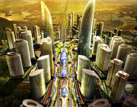 ¡¡¿ÎÀî¤ÎÅÔ»ÔȯŸ¤È̤Íè¤Î¥Ó¥¸¥ç¥ó¤òÀÐÅã¤òÀѤ߾夲¤ë¤è¤¦¤Ë¤·¤ÆÅ¸¼¨¡£ÀèüŸ¼¨µ»Ë¡¤òŬÍѤ·¡¢360Åٱ߷Á¶õ´Ö¤ò¸«ÅϤ»¤ëΩÂαÇÁü¤ÇÅÔ»Ô¤ÎÎò»Ë¤ò¾Ò²ð¤¹¤ë¡£