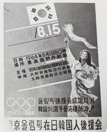 東京五輪の後援成功と韓国選手団の応援をハングルで呼びかける64年当時の在日韓国人後援会のポスター