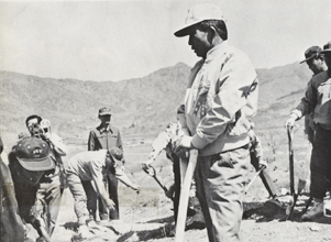 73年度の「60万のセマウムシムキ運動」。朴正熙大統領と植樹する光景(73年4月)