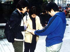 | 快く署名に応じる市民 (新宿アルタ前で) |