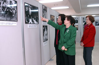 解放直後の同胞の姿などをとらえた 写真展も大きな人気を集めた |