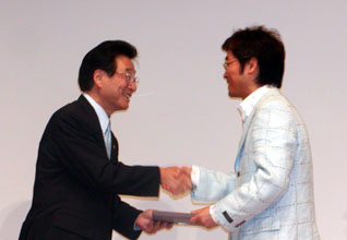 ■□ 日本全土に韓流 韓国ドラマ「冬のソナタ」でわき起こった韓流が、日本全土を覆った。6月17日には、韓国観光公社主催「韓流観光の集い」の席上、民団中央本部の金宰淑団長は「韓流」の先駆となった韓国映画「シュリ」「ブラザーフッド」の姜帝圭監督のこれまでの功労を称え、功労碑を贈呈した。