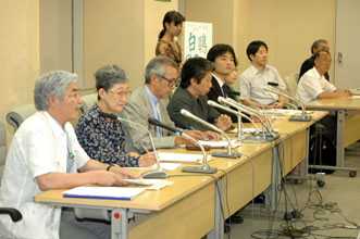 ■□ 「つくる会」教科書採択に抗議 8月26日に東京都教育委員会が、来年開校する白?高校付属中学校(仮称)の社会科教科書として「新しい歴史教科書をつくる会」の歴史教科書を採択したことで、民団をはじめ20余の関係団体は抗議・声明文などを都教委に送り、市民団体も抗議の会見をした。
