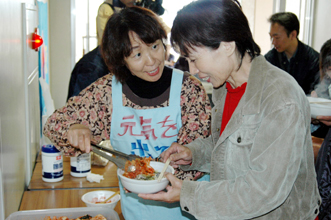 ■□ 地震と台風の被災者を救援 7月の福井集中豪雨に続き、10月23日に発生した新潟中越地震や一連の台風は同胞社会にも甚大な被害を与えた。新潟中越地震では、民団新潟の中越地震対策本部(李鐘海新潟本部団長)婦人会新潟本部の会員を中心に、民団中央に設置された「新潟中越地震・台風被害対策委員会」(委員長=金宰淑団長)のスタッフらとともに、10月31日と11日3日に長岡市の避難所2カ所と小千谷市の東小千谷小学校で、日本人被災者らにカルビスープ2500食分の炊き出しを行った。