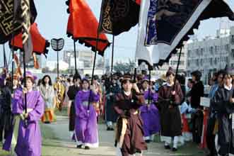 ■□ 四天王寺ワッソ 4年ぶり復活 大阪市中央区の「難波宮跡公園」で11月7日、古代の韓半島と日本列島の交流を再現した「四天王寺ワッソ」が、4年ぶりに復活した。パレードでは耽羅、加耶、新羅の往時そのままの古式衣装を身につけた約720人のボランティアが、会場を練り歩き、集まった約2万人を楽しませた。