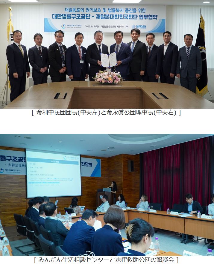 法律救助公団の金永眞理事長は「今回の業務協約を通じて在日同胞の権益保護と法律福祉の増進に大きく貢献すると期待する」とし「今後も在日同胞の権益保障と安定的な法律支援のために最善を尽くす」と述べた。
