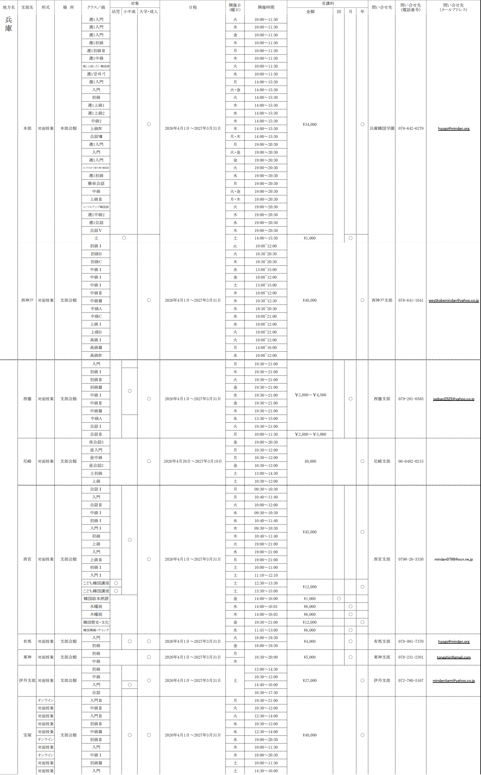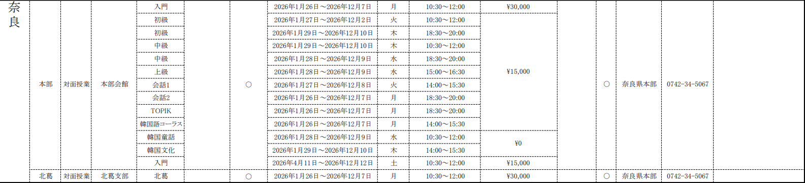 2026年度 各地の韓国語教室<近畿地区>