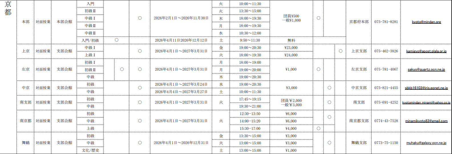 受講料などに関しては変更する場合がありますので、各地へお問い合せ下さい。