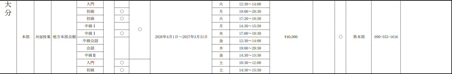 受講料などに関しては変更する場合がありますので、各地へお問い合せ下さい。