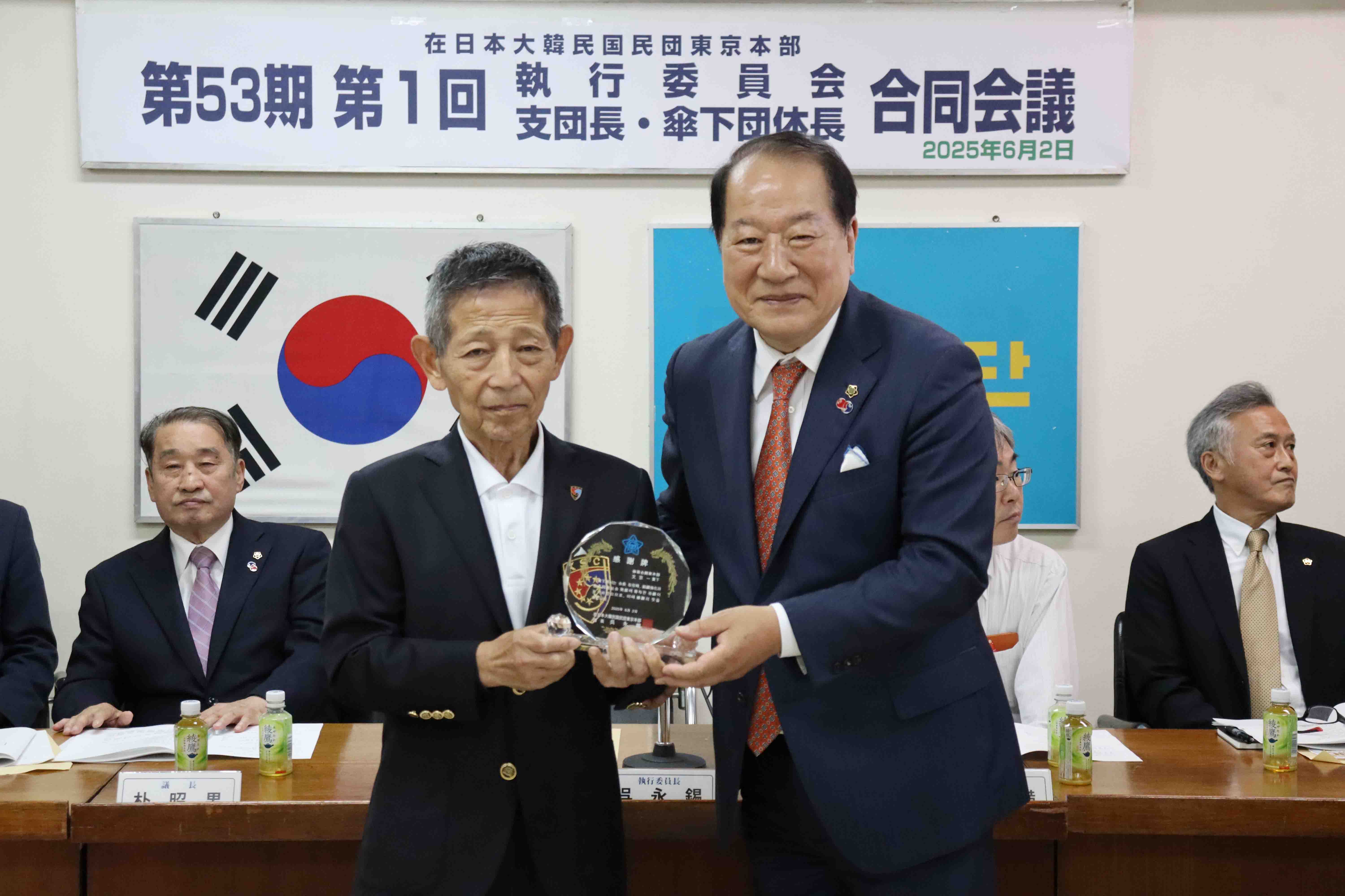 6月2日 (月) 午後3時より、民団東京本部(呉永錫団長)は、第53期第1回執行委員会ならびに第1回支団長・傘下団体長合同会議を中央会館8階小会議室にて開催、執行委員19名(定数20名)、支団長・傘下団体長をはじめ総勢69名が出席した。