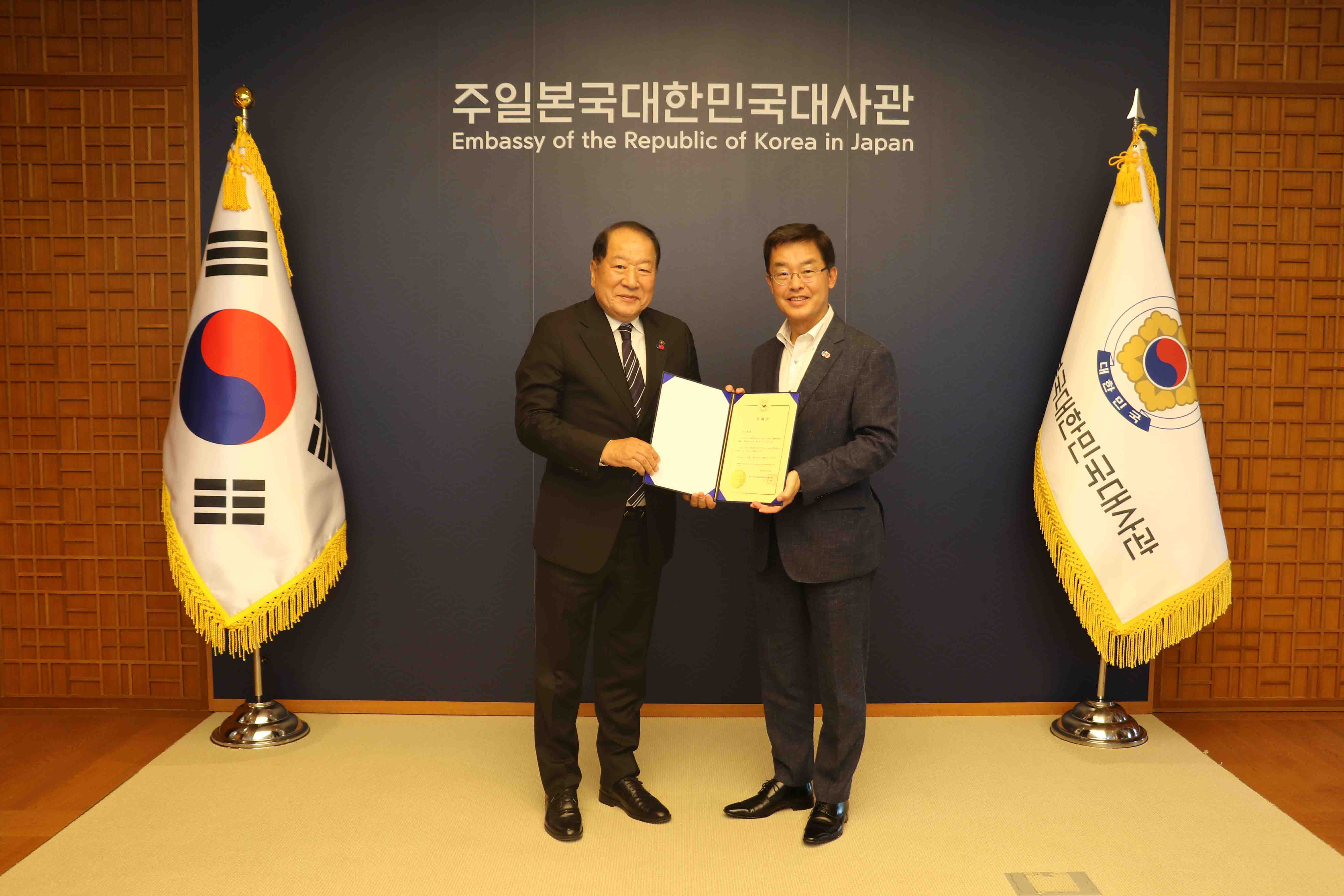 会議には東京本部の呉永錫(オ・ヨンソク)団長が出席し、朴喆熙(パク・チョルヒ)駐日韓国大使より、実行委員としての委嘱状が授与された。