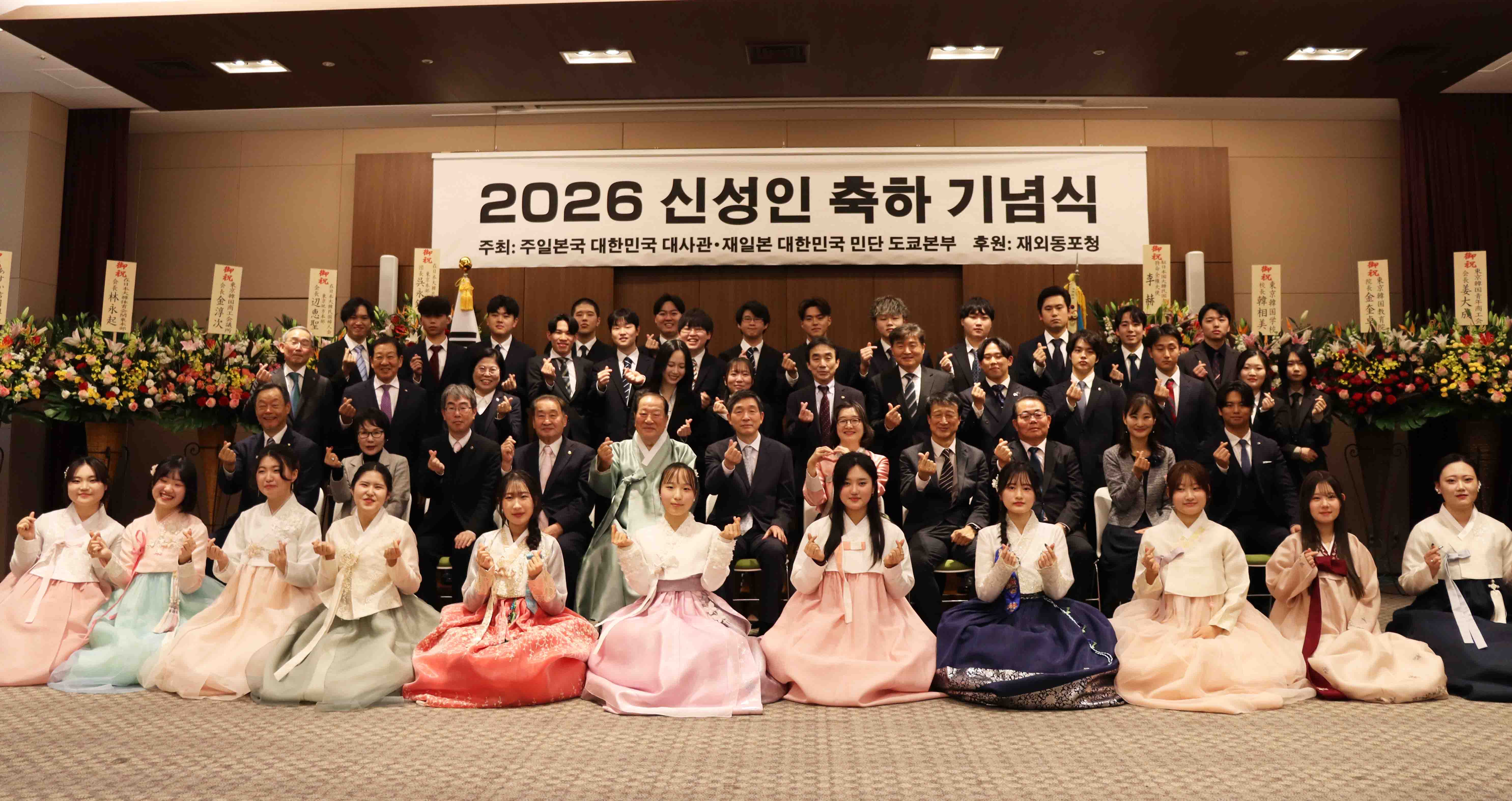 東京本部(呉永錫団長)は、2026年1月11日(日)午後2時より、韓国大使館大講堂において「2026在日韓国人成人式」を駐日韓国大使館と共同主催により開催した。本式典は、青年会東京本部(郭玹瑀会長)が主管した。
