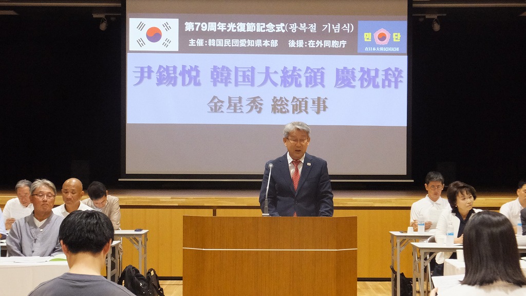 民団愛知県本部(河隆實団長)の第79周年8.15光復節記念式典が8月15日、民団愛知県本部で開催され、来賓として駐名古屋大韓民国 金星秀総領事、金承煥領事、また愛知県の在日同胞と関係者約300人が参加しました。