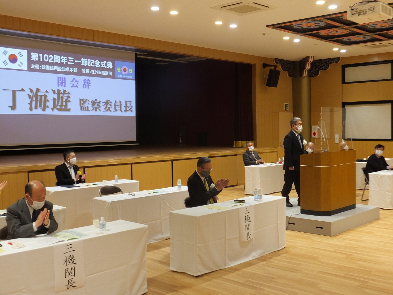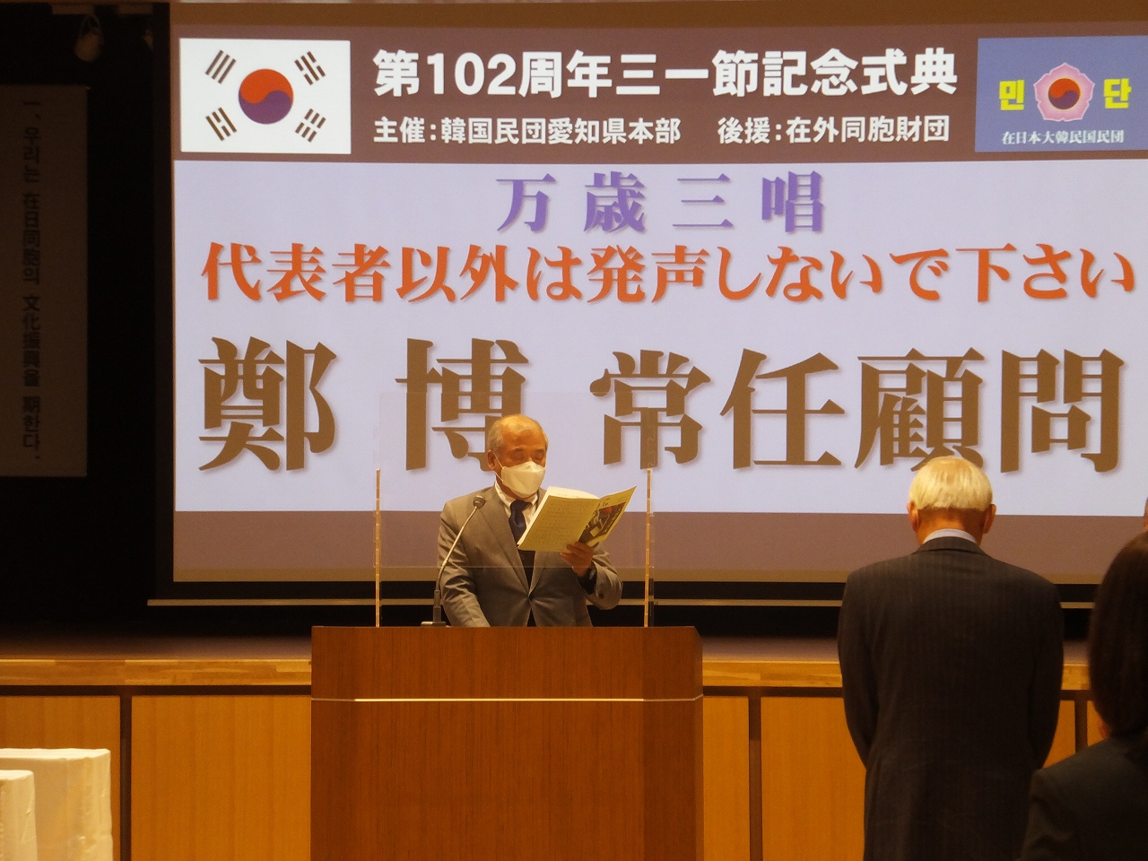 民団愛知県本部(朴茂安団長)の第102周年三一節記念式典が3月1日、民団愛知県本部で開催され、来賓として駐名古屋大韓民国 朴先哲総領事と本部・支部の役員60人が参加しました。