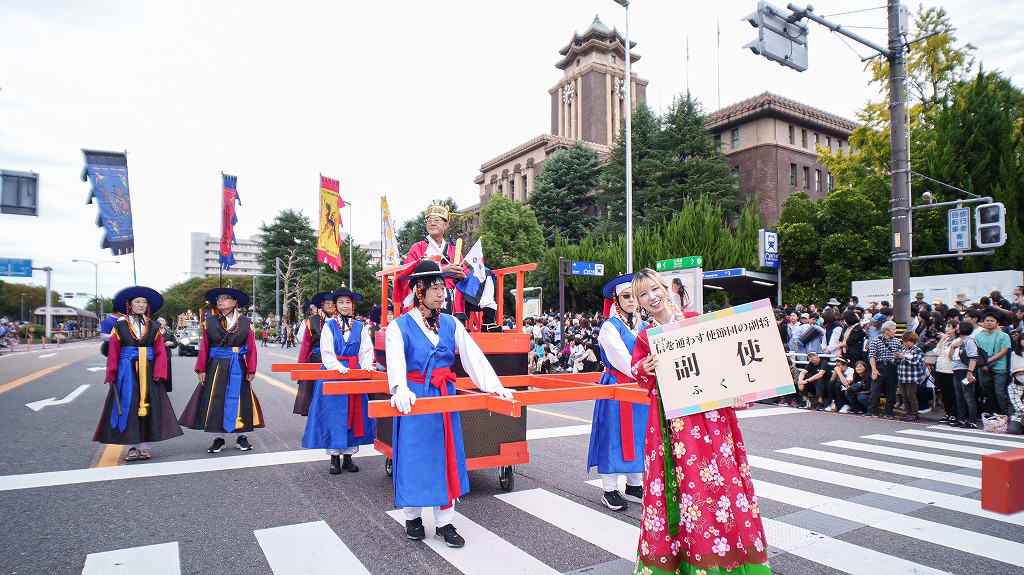 民団愛知県本部(李豊宏団長)が主催、駐名古屋大韓民国総領事館(金星秀総領事)、名古屋日韓親善協会(斉藤実会長)などの後援により、伝統ある「第71回名古屋まつり」で朝鮮通信使を再現させました。