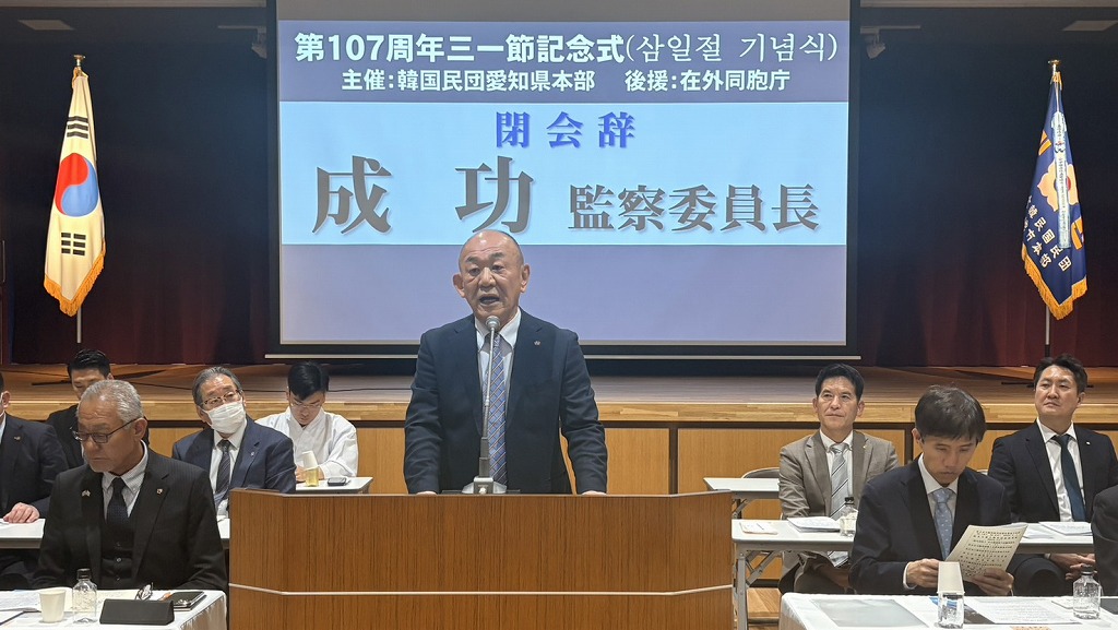 民団愛知県本部(李豊宏団長)の第107周年三一節記念式典が3月1日、民団愛知県本部で開催され、来賓として駐名古屋大韓民国 崔盛宇副総領事らと民団関係者合わせて280人が参加しました。