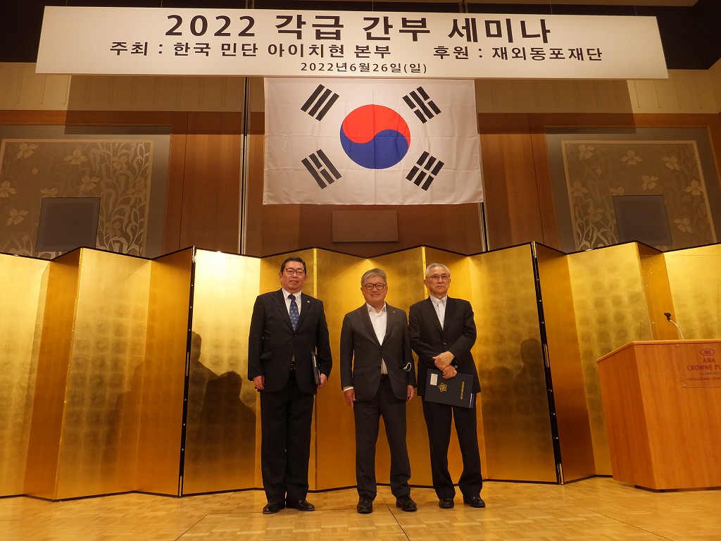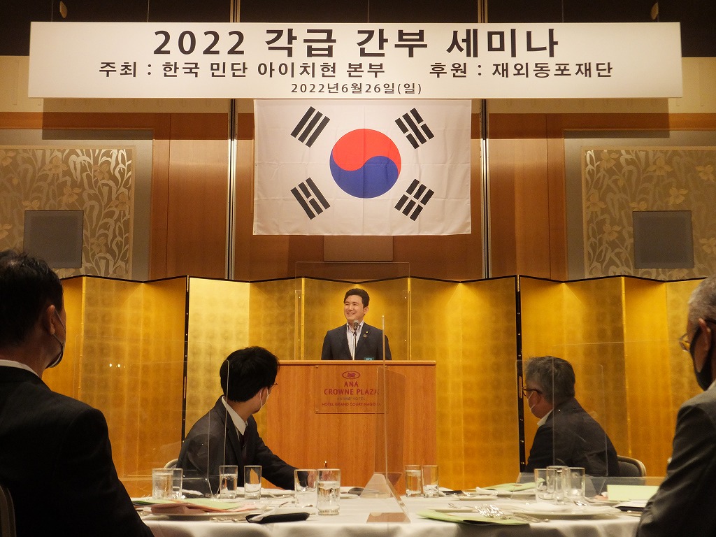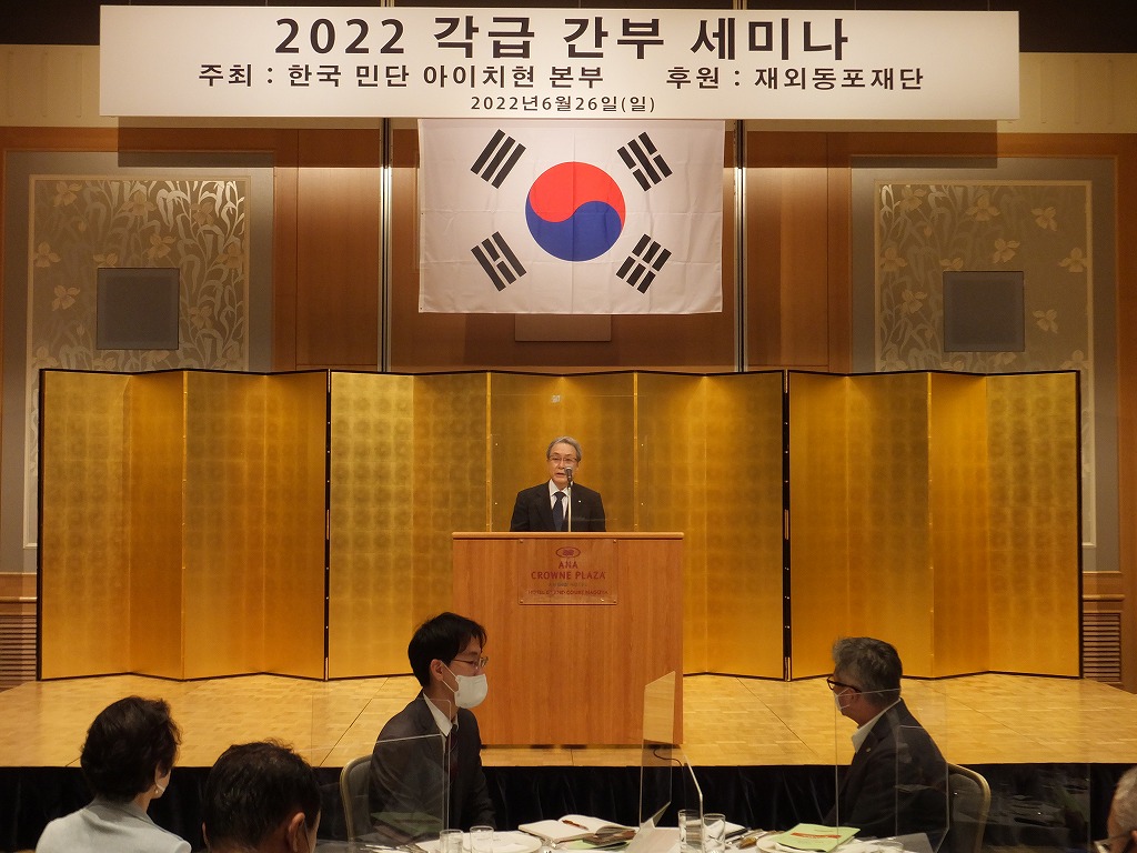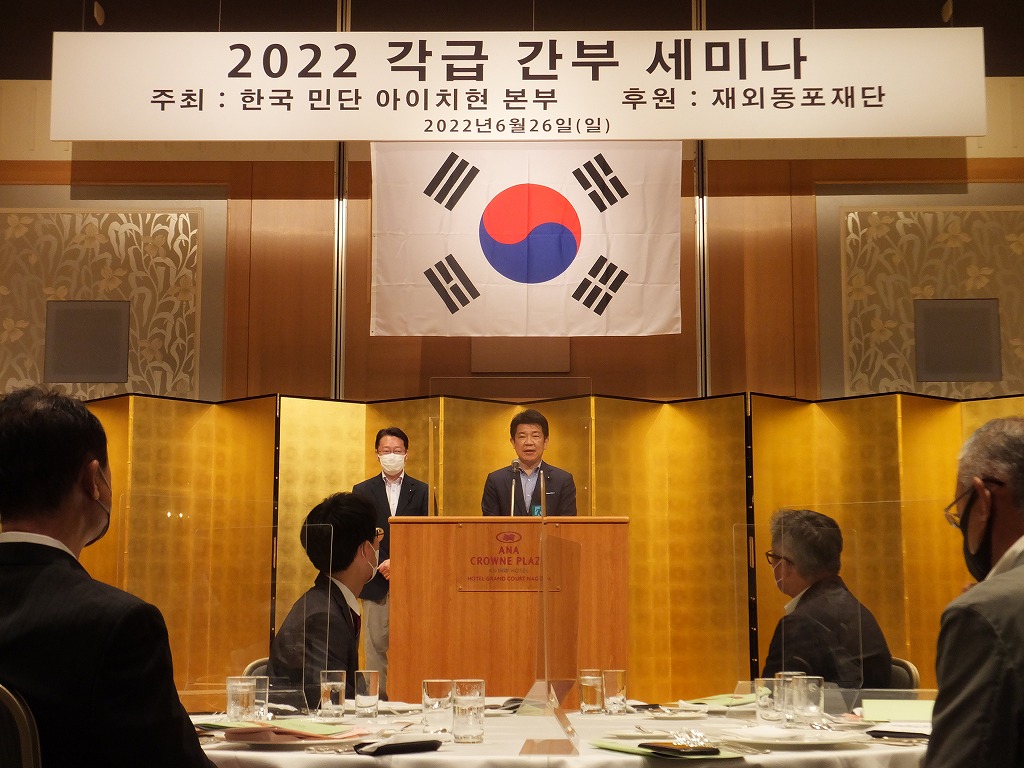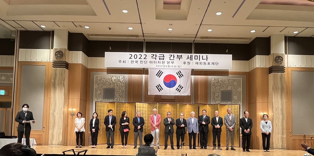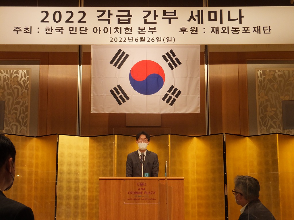 民団愛知県本部(河隆實団長)の2022年度の実質的なスタートとなる「愛知県下 各級幹部セミナー」が6月26日、ホテルグランコート名古屋で開催され、来賓として駐名古屋大韓民国 金承煥領事、公明党 安江伸夫 参議院議員、犬飼明佳 愛知県会議員、自由民主党 寺西睦 愛知県会議員、中根義高 愛知県会議員また県下の各級幹部ら合わせて150名が参加しました。
