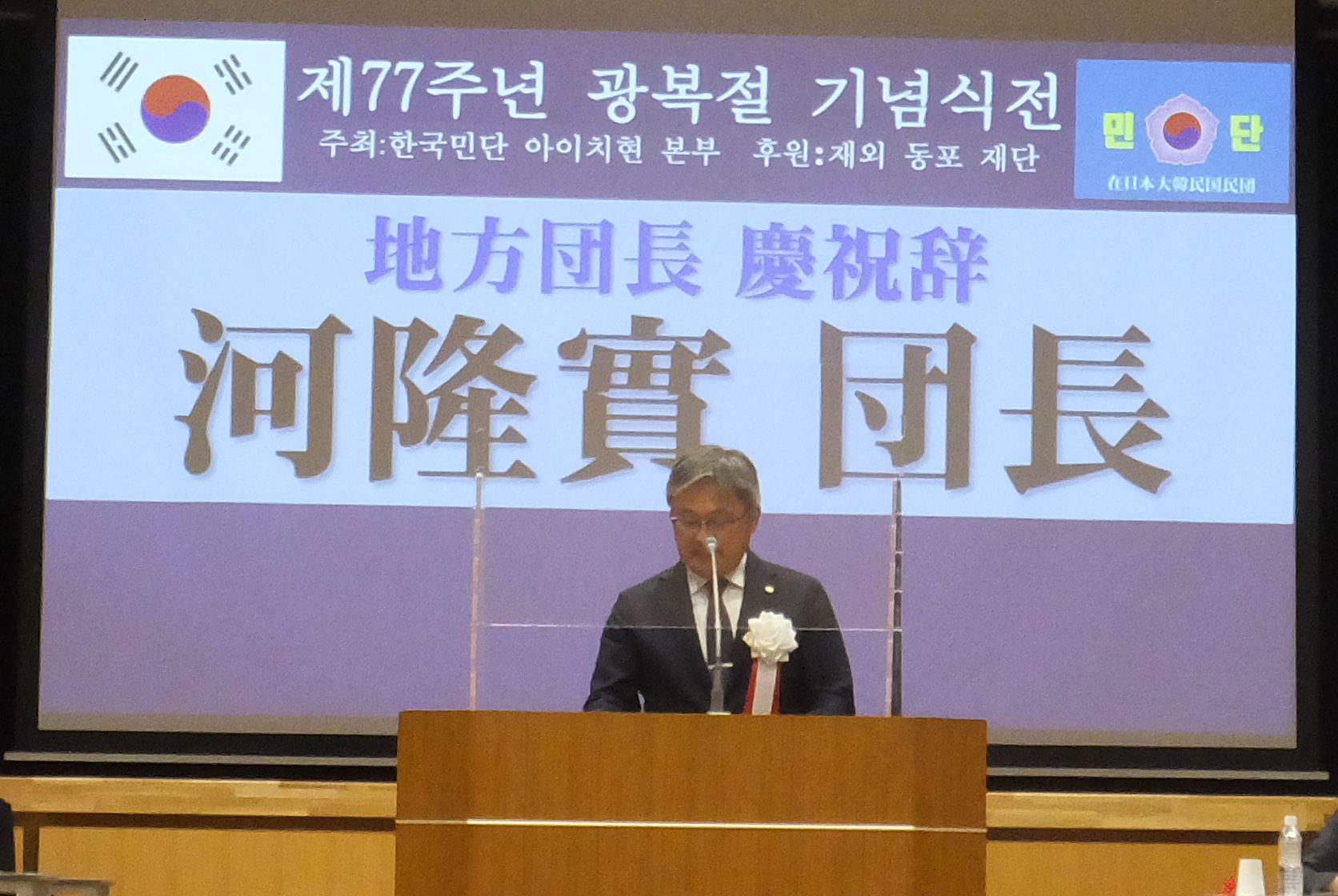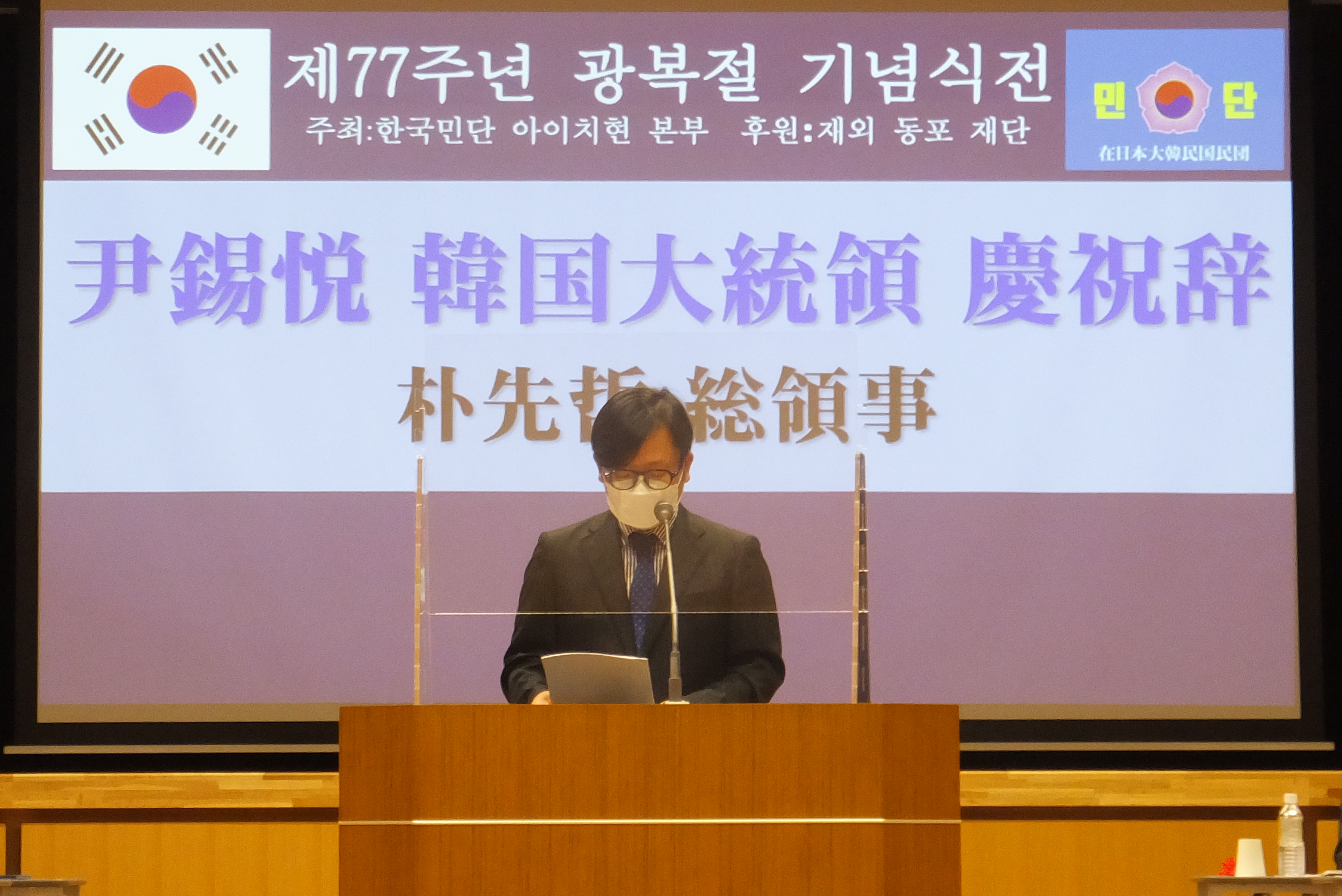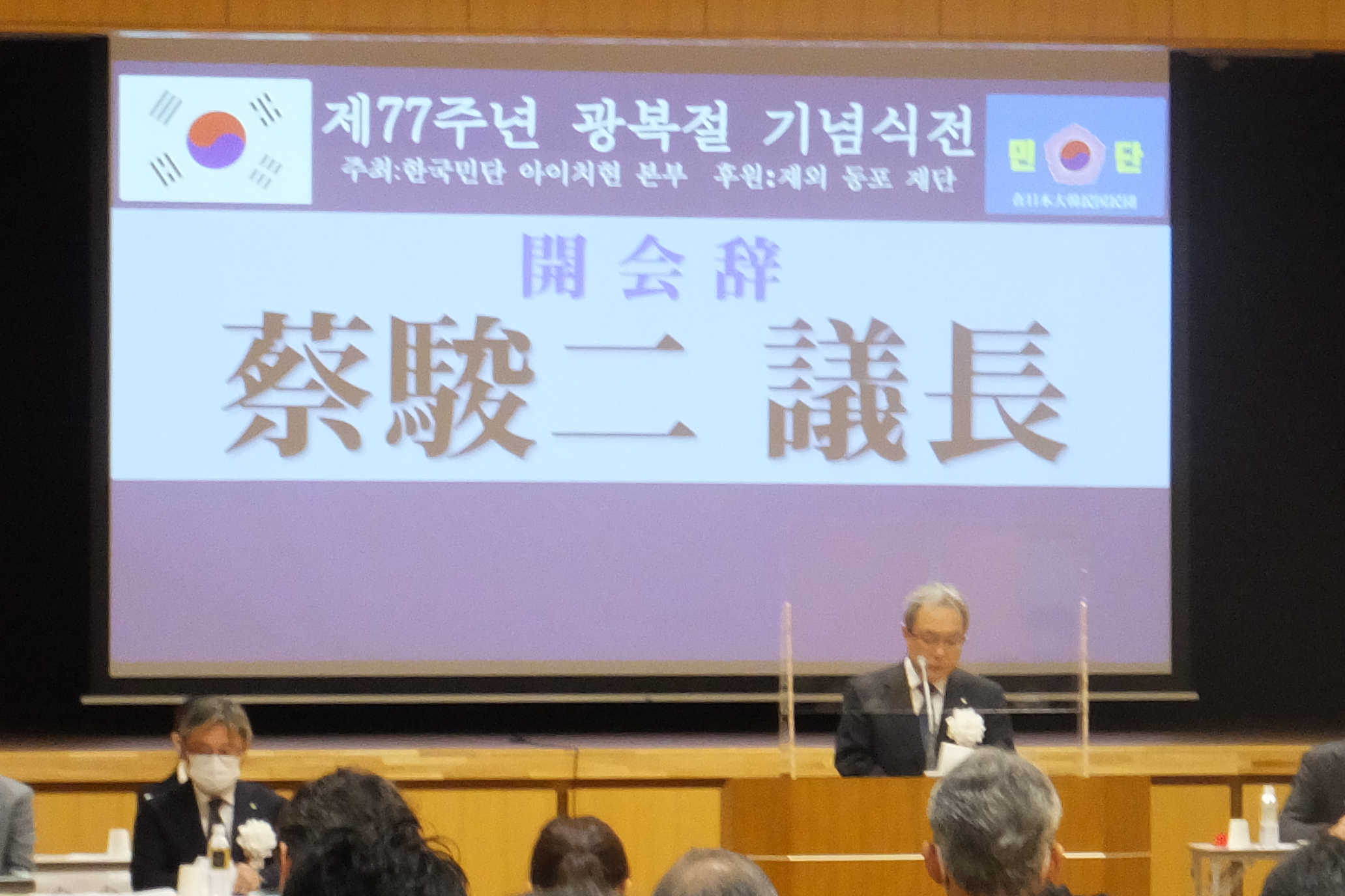 本日、光復77周年を迎えた私たちは、民族解放の喜びと祖国光復のために犠牲になられた先人たちの尊い愛国精神を深く胸に刻み、今日の祖国の繁栄と在日同胞社会の発展に献身されてこられた諸先輩に敬意と感謝の念を捧げます。